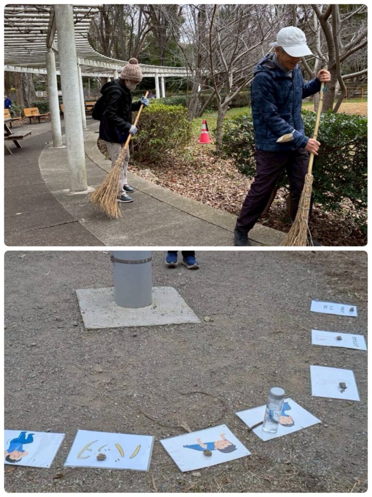 (上)みんなの為に、枯れ枝枯れ葉を掃きます  (下)サーキットのパネル準備ok